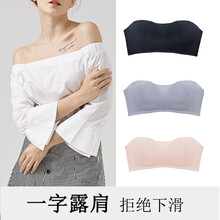 无带聚拢文胸抹胸式无肩带防滑上托一字领露肩防走光裹胸小胸内衣 黑色 B(34/75)