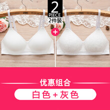 棉质光面无钢圈少女内衣发育期大学生高中生薄款文胸小胸聚拢胸罩 白色+灰色 【2件装】 32/70 AB杯通用