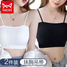 猫人2件装无痕内衣女抹胸吊带背心无钢圈文胸聚拢性感胸罩可打底套装 黑+白均码