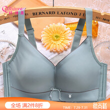 纤诗柔无钢圈无痕内衣女夏小胸薄款上托聚拢防下垂调整型简约光面舒适文胸 1671 灰绿色 34/75C