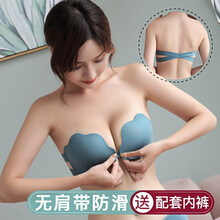 法国KJ可拆卸肩带内衣女防滑聚拢无带文胸小胸前扣一字肩上托无痕露背胸罩 蓝绿色 70A=32A(配S码内裤)