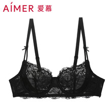 爱慕Aimer内衣微醺文胸3/4罩杯性感蕾丝网眼超薄款聚拢女士内衣 AM13DF1黑色B70