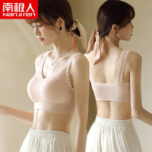 南极人 花边美背文胸无钢圈内衣女裹胸抹胸柔软舒适上托聚拢女士内衣蕾丝胸罩 米咖色单件装 均码