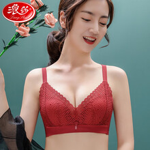 浪莎 LangSha胸罩女聚拢无钢圈小胸超柔睡眠无磁内衣文胸 酒红 34AB