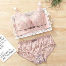 雅黛琳内衣女小胸无钢圈聚拢加厚款性感蕾丝薄款舒适侧收女士文胸罩套装 肤色(文胸+内裤) 34/75(AB同杯)
