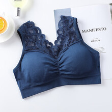 俞兆林文胸蕾丝美背无钢圈跑步运动文胸瑜伽舒适内衣 宝蓝