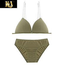 法国KJ美背法式前扣内衣女无钢圈薄款小胸聚拢美背吊带性感三角杯细带文胸罩 绿色套装 75/34 A/B【舒适美背】
