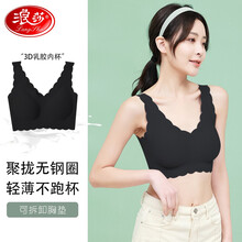浪莎无痕运动内衣女士薄杯无钢圈文胸夏季新款光面小浪花舒适聚拢背心 【一片式】气质黑 均码