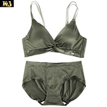 法国KJ品牌无痕聚拢无钢圈内衣女套装文胸聚拢小胸罩法式性感惑无痕内裤夏秋季薄款防下垂上托文胸 绿色--套装 75B