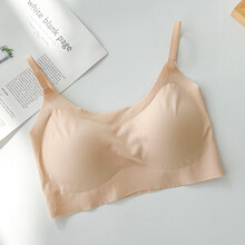 欧芙影无尺码文胸运动文胸无尺码内衣女一片式无痕无钢圈光面轻薄款文胸夏收副乳防下垂胸罩 肤色 均码