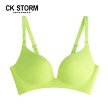 CK STORM女士文胸女内衣无钢圈新品一片式透气光面女式文胸单件装礼盒装 荧光绿 70A厚款