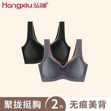 弘袖无痕文胸女运动内衣女无钢圈小胸聚拢美背心式少女文胸2件装 灰紫+黑色 L