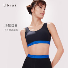 Ubras字母宽织带背心文胸瑜伽健身运动文胸舒适透气无钢圈内衣女 黑色+蓝底织带 M