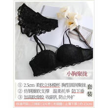 【森核】 内衣女小胸聚拢加厚无钢圈bra少女日系收副乳上托调整型文胸套装 黑色【套装】 34/75ABC通杯