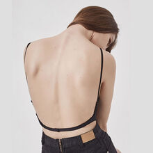 大u美背文胸u型美背内衣新品聚拢U型大露背文胸薄款婚纱礼服专用内衣隐形度假露背美背 黑色系 光面(3种穿法) M码适合75ABC