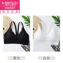 莫代尔【2件装】镂空美背蕾丝花边内衣女运动无痕无钢圈胸罩夏季透气文胸 黑色+白色 均码(80-130斤)
