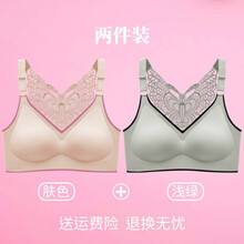 大码文胸舒适无钢圈光面胸罩薄透气纯色无痕美背聚拢大胸显小内衣 肤色+浅绿 XL(建议120-140斤38/85BCD)