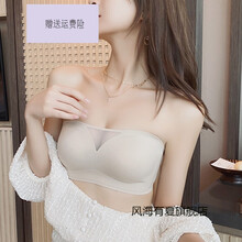 风海有夏无肩带文胸法国隐形内衣女光面防滑聚拢无钢圈侧收副乳薄款透气美背一片式抹胸 肤色 L【75C/80A/80B】