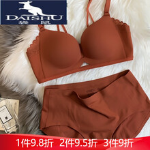 袋鼠高档大牌文胸罩日本光面无钢圈文胸套装薄款蕾丝胸罩无痕内衣女小胸聚拢调整型夏天穿的款 砖红+内裤旗舰品牌 32=70(建议70AB)旗舰品牌