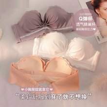 性感无肩带内衣少女抹胸无钢圈交叉美背文胸小胸聚拢褶皱光面胸罩 烟灰紫 34/75AB