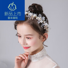迪士尼同款韩版儿童礼服配饰女童发夹发饰发箍花环头饰小花童女孩头箍白色饰品 白色米珠花环(精致版)送丝带