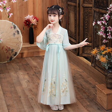 乖奇奇汉服女童2021新款中国风春秋款唐装超仙樱花公主襦裙儿童古装花童礼服 浅绿莲花汉服 100