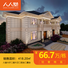 人人墅B9农村自建房二层欧式乡村轻钢别墅设计效果图建筑施工图纸建设精装修全包服务整装交付 定金