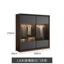 玻璃衣柜 北欧衣柜现代简约卧室组装木质移门滑门大衣橱转角推拉门玻璃衣柜 1点6米单衣柜(半玻璃门) 推拉门 6门 组装