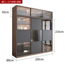 玻璃衣柜 北欧衣柜现代简约卧室组装木质移门滑门大衣橱转角推拉门玻璃衣柜 B款三门衣柜+顶柜(半玻璃门) 推拉门 4门 组装