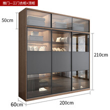 玻璃衣柜 北欧衣柜现代简约卧室组装木质移门滑门大衣橱转角推拉门玻璃衣柜 C款三门衣柜+顶柜(半玻璃门) 推拉门 2门 组装