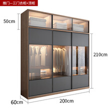 玻璃衣柜 北欧衣柜现代简约卧室组装木质移门滑门大衣橱转角推拉门玻璃衣柜 A款三门衣柜+顶柜(半玻璃门) 推拉门 6门以上 组装