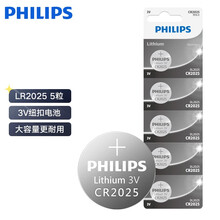 【飞利浦电池正品保证】cr2025纽扣电池5粒,远距离遥控更灵敏,3V锂电芯,电力持久,适用奔驰/迈巴赫/smart汽车钥匙摇控等抢购