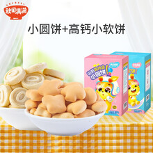 秋田满满高钙牛奶小软饼果蔬胚芽小饼干海苔芝麻搭配宝宝零食磨牙棒易溶婴儿辅食无添加盐糖儿童谷物1岁零食 山药鸡内金小圆饼+高钙牛奶小软饼