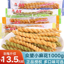 众望小麻花海苔咸味芝麻甜味1000g众望麻花零食特产糕点点心小吃独立包装 海苔咸味500g+奶油甜味500g
