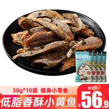 独角兽暴肌厨房 低脂香酥小黄鱼干酥脆健身零食炭烤小黄花鱼即食烤小鱼高蛋白独立包装 海苔味30g*10袋