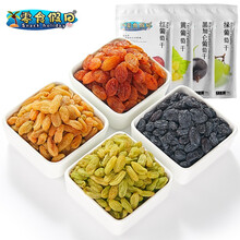 零食假日 四色葡萄干220gx4袋新疆特产无核免洗大颗粒提子干 休闲零食绿香妃玫瑰红黑加仑葡萄干