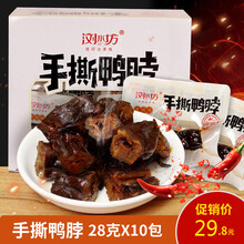 浏水坊手撕鸭脖子零食小包装28g*10包香辣酱板风干卤味湖南特产 香辣味手撕鸭脖28克30包(整盒)