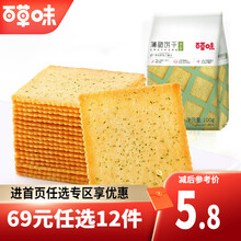 69选12-百草味 薄脆饼干100g 办公室休闲代餐海苔咸味零食小包装 海苔味