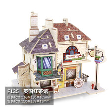 小房子模型手工3D立体拼图diy小屋木质拼图拼装玩具世界建筑 F135英国红茶馆