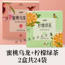蜜桃乌龙茶白桃组合型花草茶水果茶桂花玫瑰柠檬红茶草莓茉莉绿茶 2盒【蜜桃乌龙+柠檬绿茶】24袋