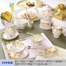 轻奢高端茶具套装欧式茶具咖啡杯套装英式下午茶茶具红茶杯碟套装陶瓷美式咖啡具 26件套装粉黛佳人 15件