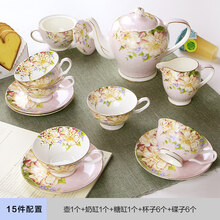 轻奢高端茶具套装欧式茶具咖啡杯套装英式下午茶茶具红茶杯碟套装陶瓷美式咖啡具 15头粉黛佳人内花 15件