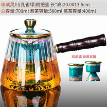 轻奢 煮茶壶蒸汽煮茶器玻璃泡花茶壶烧水壶网红茶具小型家用单壶 玻璃灵川(孔雀绿)侧把壶