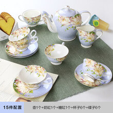 轻奢高端茶具套装欧式茶具咖啡杯套装英式下午茶茶具红茶杯碟套装陶瓷美式咖啡具 15头蓝色妖姬内花款 15件