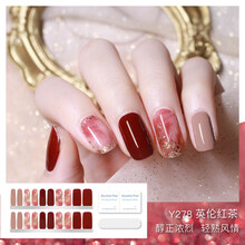 【冰透奶茶】指甲贴纸贴片美甲贴纸ins甲片成品防水可拆卸3d穿戴 英伦红茶【显白】