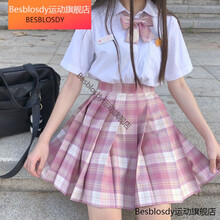 女童英伦学院风衬衫jk制服长短袖套装夏季春秋学生校服格子裙 树莓红茶格裙+白衬衫+领结 成人S码(80-90斤)