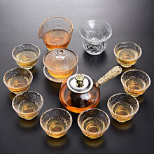 轻奢高端耐热玻璃功夫茶具套装家用普洱红茶绿茶玻璃茶壶茶杯盖碗茶具套装 流云侧把13头玻璃