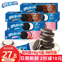 奥利奥(Oreo)巧克力原味夹心饼干696g12包实惠装早餐饼干独立小包儿童零食节日礼物整箱批发 116g*6盒(原味+草莓味+巧克力味)