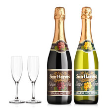 默认韵达快递,西班牙原装进口无酒精起泡果汁,白葡萄,红葡萄,桃红葡萄,青苹果4种口味自由搭配2瓶,默认发白葡萄+红葡萄送2香槟杯