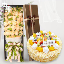 由集 生日蛋糕 同城配送 七夕节预定香槟玫瑰花束礼盒蛋糕鲜花组合 送女朋友闺蜜老婆 当日送达 下午茶